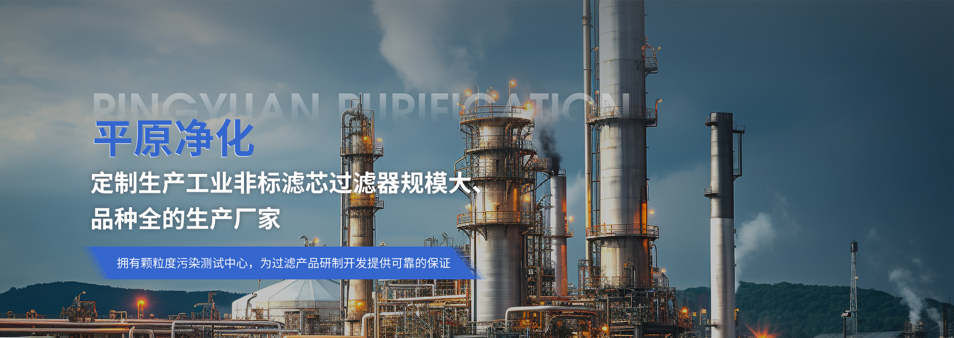 新鄉市平原凈化技術有限公司,位于新鄉市建北一路116廠北地工業區。公司是從事流體分離與凈化設備研發、生產、經營的企業。是目前國內生產各種工業非標濾芯過濾器規模較大、品種較全的生產廠家之一。擁有顆粒度污染測試中心,為過濾產品研制開發提供可靠的保證。如:石油化工、天然氣及煤層氣凈化過濾裝置,各種空氣凈化裝置,高溫除塵凈化裝置,油水分離裝置,油氣分離器 以及各種液體精密過濾器等。公司秉承“鑄人品,造精品......